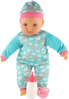 В комплекта ще намерите шишенце и биберон, с които децата могат да имитират истински грижи за бебе. Куклата е идеален подарък за развиване на емпатични умения, фината моторика и ролевите игри.