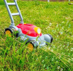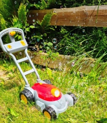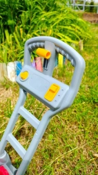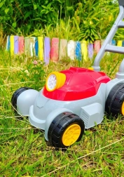 Леката конструкция, здравата дръжка и големите колелца осигуряват лесно бутане по трева и твърди настилки. Играчката насърчава движението, фантазията и ролева игра, затова е идеална за забавления навън в градината, на терасата или в парка.