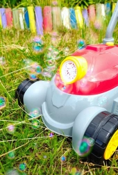С един бутон пускате поток от мехурчета, с другия добавяте и светлини и музика. Перфектно за по-пъстра игра навън.