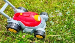 Вграденият бълбукатор създава множество мехурчета от предната част на косачката. Разтворът е включен в комплекта – можете да започнете веднага.