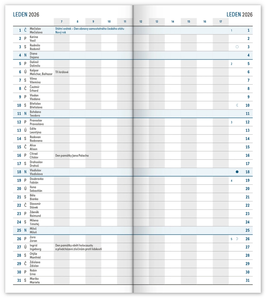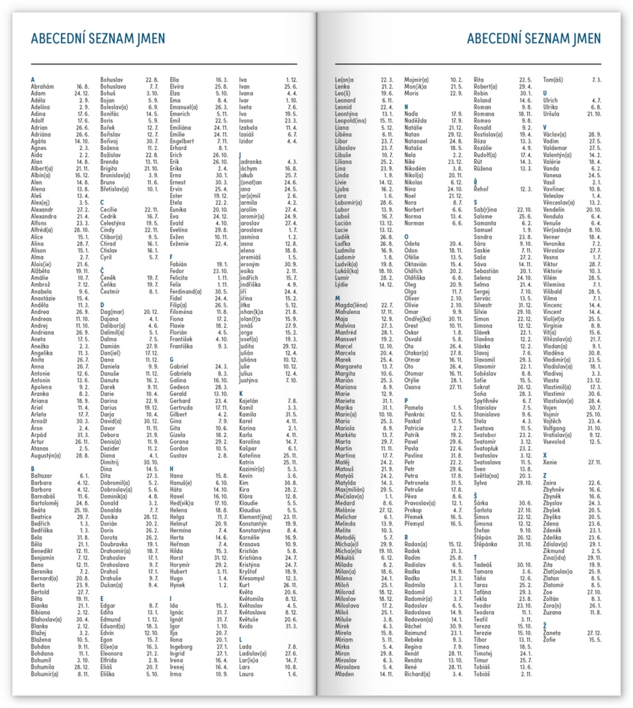 - Чешки календар с имена, празници и паметни дни.