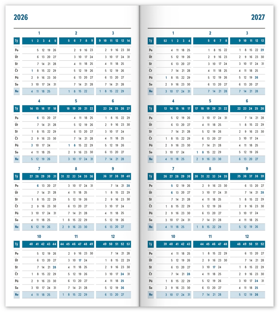 Практичен тънък дневник в син цвят с месечно разпределение, който се побира навсякъде. Съдържа български календар с имена, празници и паметни дни.