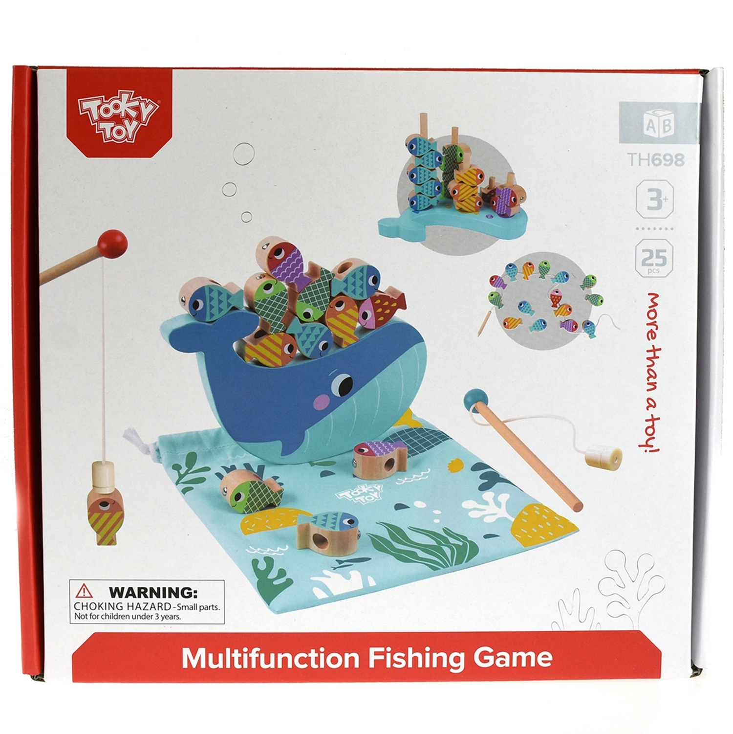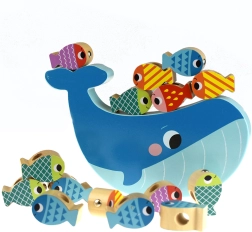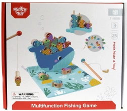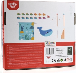 Tooky Toy Дървена игра Кит и Рибки Мултифункционална 4 в 1 е подобрена версия на класическата магнитна риболовна игра, която предлага повече игрови режими. Лесно и бързо превключвайте между различните типове игри – със състезателен елемент или без него – като децата винаги развиват координационните си умения и моториката.