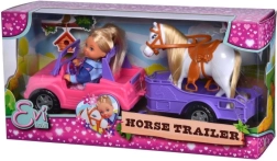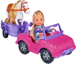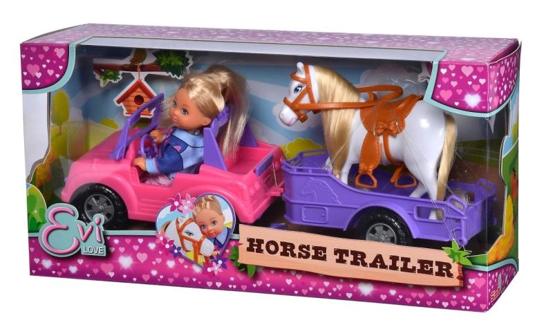 Този комплект дава на децата всичко за техните ездачески приключения. Куклата Evi Love кара стилен розов кабриолет, който тегли лилаво ремарке за удобен превоз на кончето. Благодарение на въртящите се колела и отделящото се ремарке играта е плавна и забавна у дома и в движение.