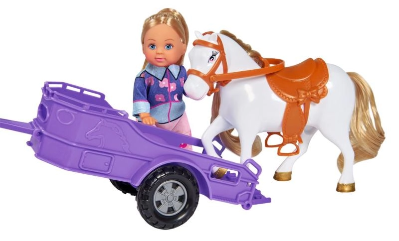 В комплекта има бяло конче с дълга грива, седло и оглавник, за да може Evi да тръгне на разходка. Децата ще се насладят на богати възможности за сюжетна игра, като развиват фината моторика и фантазията.