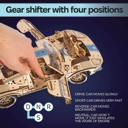 Endurance Racer от Ugears е двуврато спортно купе, проектирано за автомобилни ентусиасти. Моделът се отличава с реалистични състезателни елементи като скоростен лост с режими напред, назад и спорт за допълнително ускорение. Силиконовите гуми осигуряват отлична сцепляемост и стабилност.