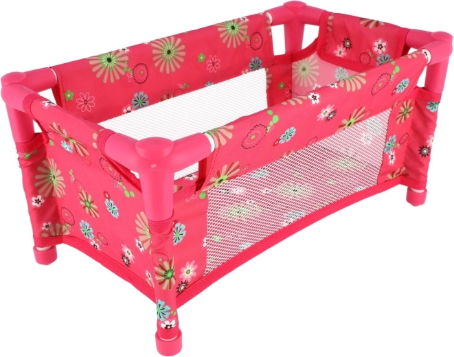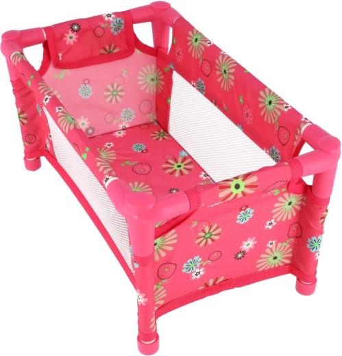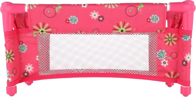 Това розово пътно легълце за кукли носи на децата реалистична грижа за любимите им приятелки. Благодарение на мрежестите странични части децата имат добър поглед към куклата, а същевременно е осигурена добра вентилация. Легълцето лесно се сгъва в текстилна чанта, което го прави идеално за гости и почивки.