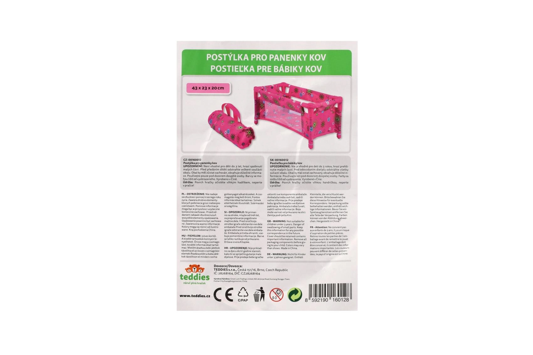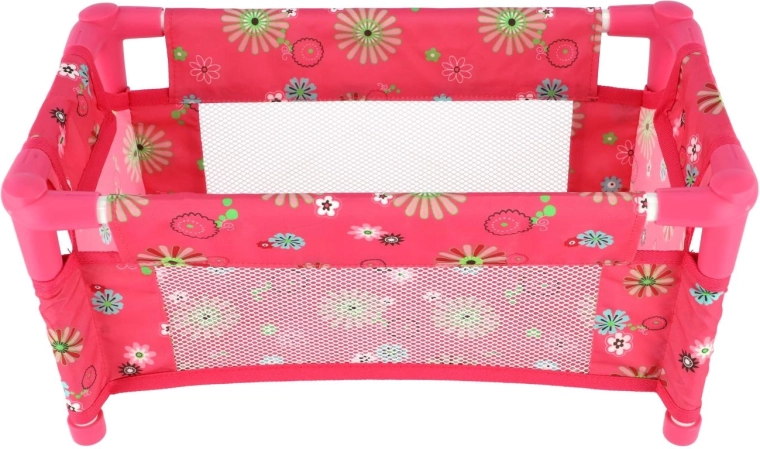 Здрава, но лека конструкция от тръби и текстилни панели издържа на ежедневна игра. Легълцето е без матрак (без твърдо дъно), което го прави безопасен и гъвкав аксесоар за детската стая. Веселият флорален мотив в розови тонове ще зарадва всяка малка майка.