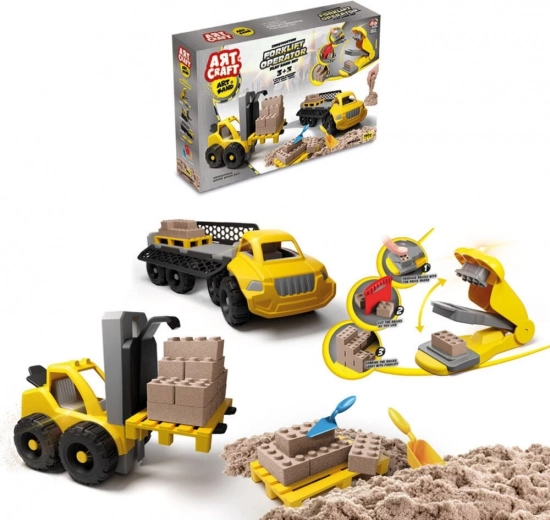 Забавният комплект с кинетичен пясък ART CRAFT е предназначен за деца от 3 години и осигурява качествена и безопасна игра с пясък, който е идеален за творчество и строене.