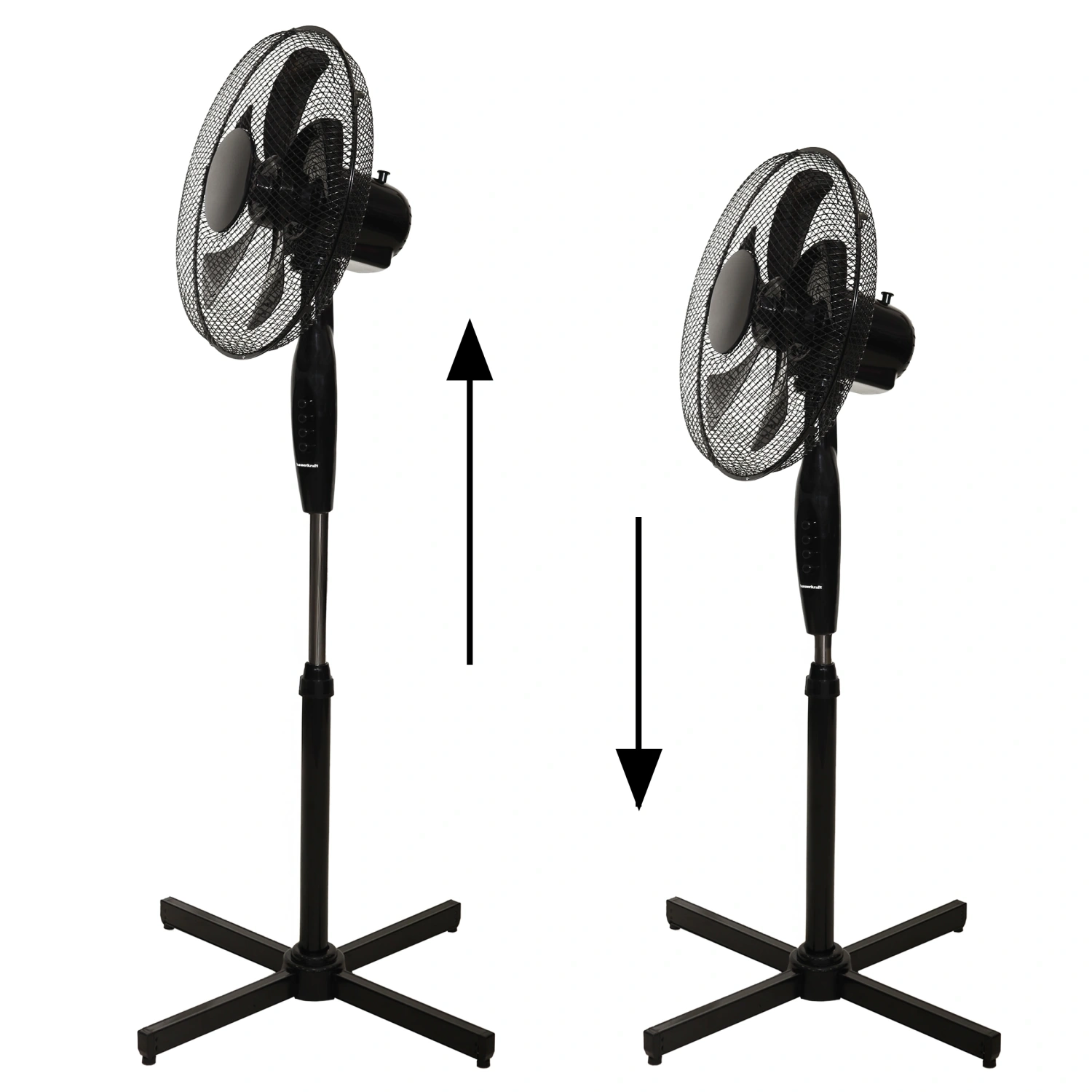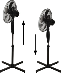 Благодарение на плавно регулируемата височина от 110 до 130 см можете лесно да поставите вентилатора навсякъде – до дивана, леглото или бюрото. Така осигурявате оптимална циркулация на въздуха в целия пространствен обем. В комбинация с регулируем наклон и осцилация имате пълен контрол върху посоката и прецизното охлаждане.
