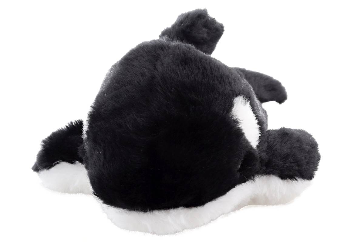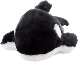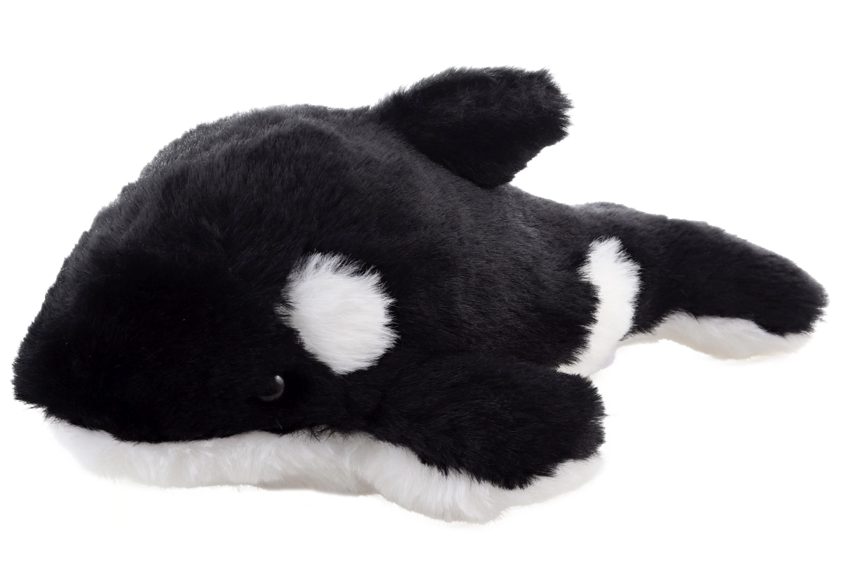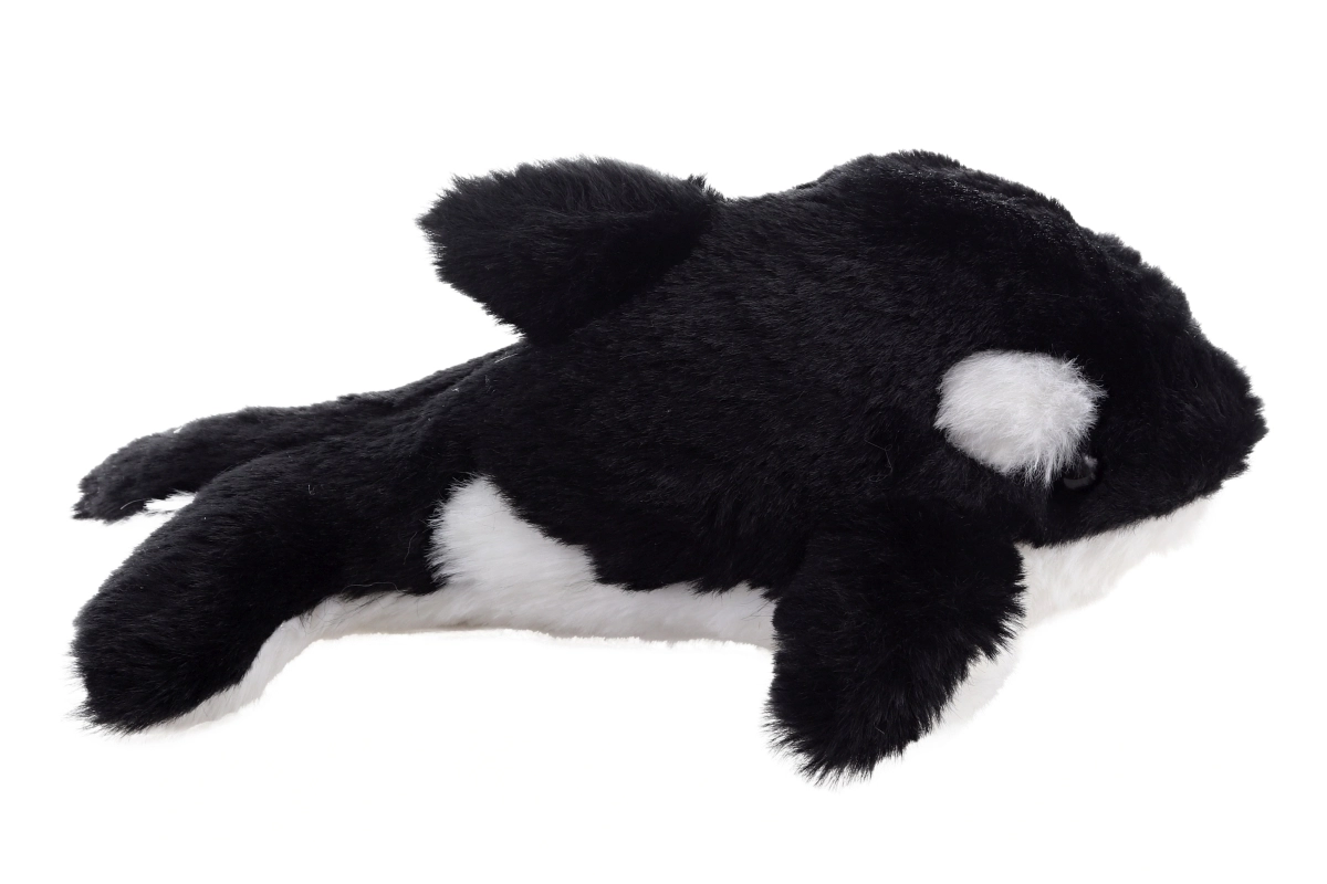 Дизайнът на тази плюшена играчка вярно наподобява истинска косатка, включително характерните черно-бели петна.