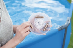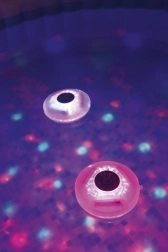 Тази модерна LED лампа е лесна за употреба: необходимо е да поставите три батерии AA (не са включени в комплекта), да поставите лампата на повърхността на водата и да натиснете бутона отгоре. Не са нужни кабели или свързване към електрическата мрежа. Проектирана е да осветява деликатно водна площ с ширина 2,43 m и дълбочина 1,52 m. Автоматично се изключва след един час бездействие.