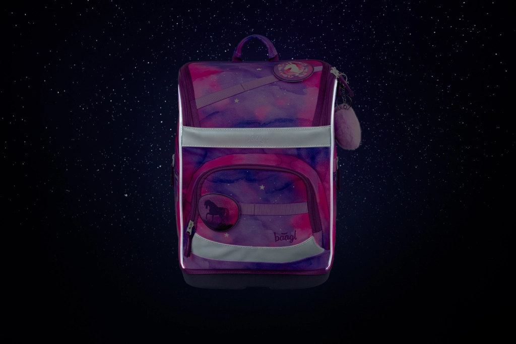 Креативността на детето може да се изрази чрез уникалната система за сменяеми значки на раницата. Безопасността е подсигурена от светлоотразителни елементи и надеждни ципове YKK. Конструкцията е с твърдо дъно и тегло 1 150 g, за да запазва форма и да стои стабилно.