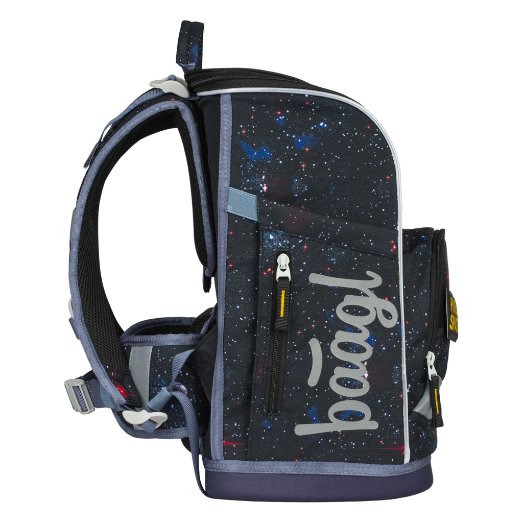 Този училищен комплект от марката BAAGL в дизайн Pixel Space съдържа ергономична раница Zippy Plus, едноетажен пенал и практична торбичка с джоб. Идеален е за деца от 1. клас благодарение на лекотата и регулируемостта на отделните елементи.