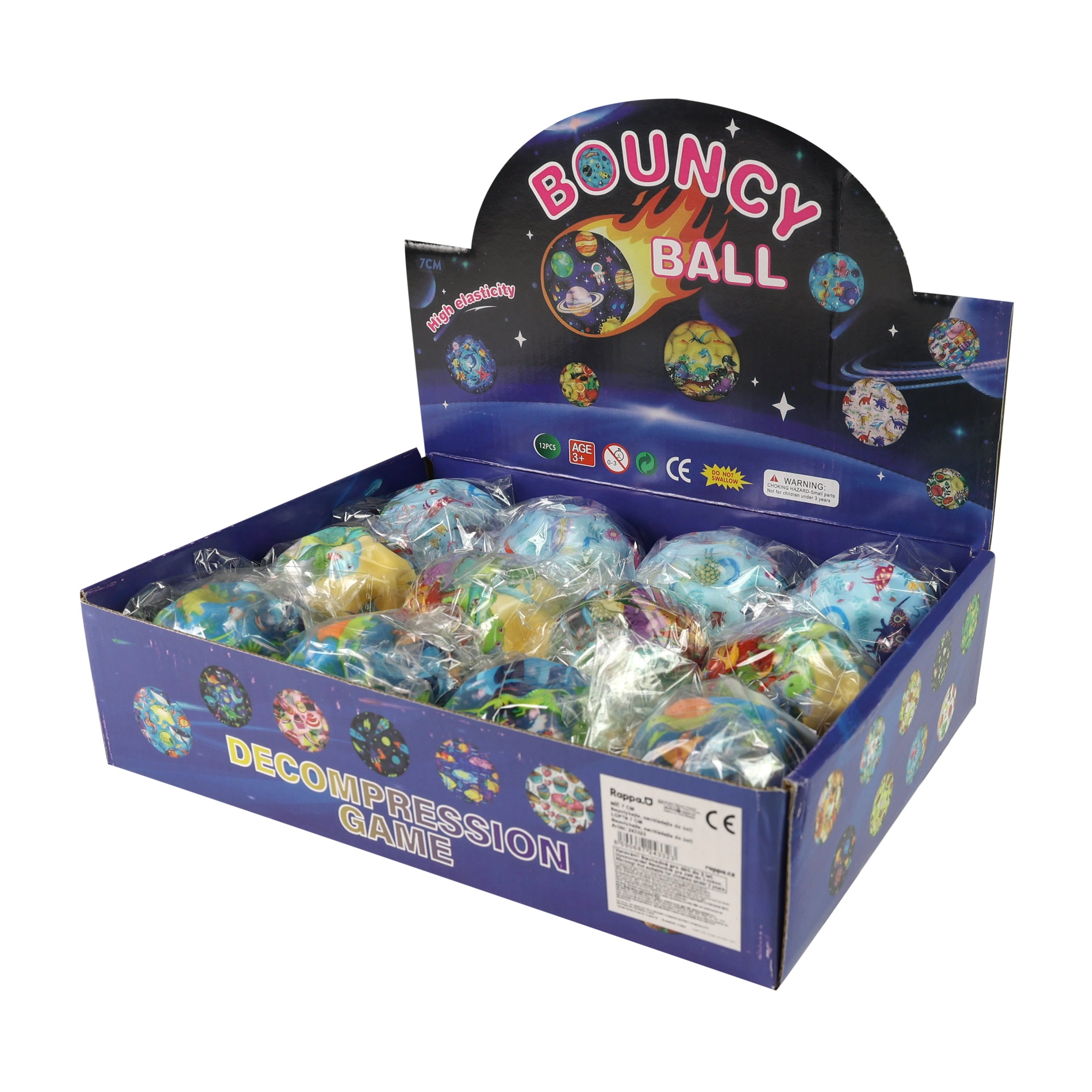 Забавно скачащо топче с щампа на любими динозаври с диаметър 7 см носи безкрайно забавление за деца и възрастни. Благодарение на мек и еластичен материал скача високо, идеално е за игра у дома, навън и в училище. Продава се само в цели опаковки по 12 бр. в микс от мотиви.
