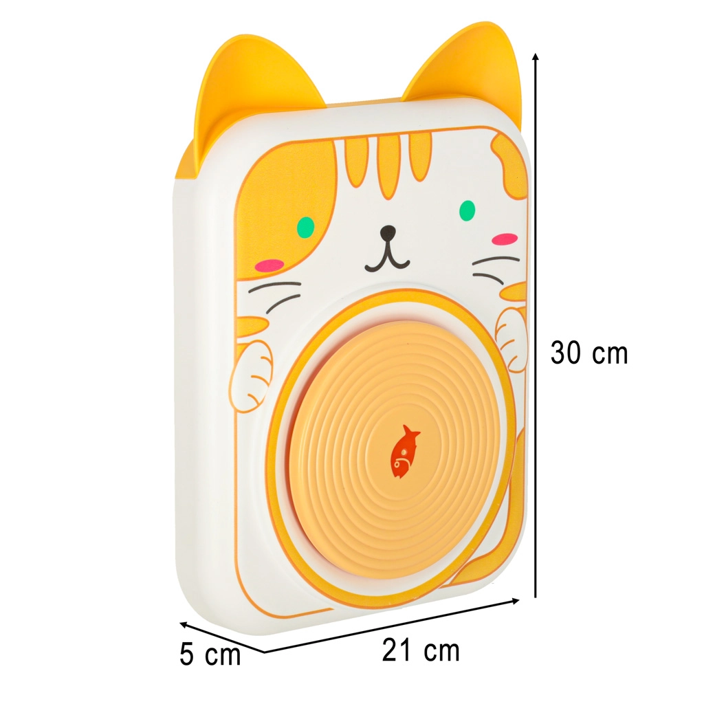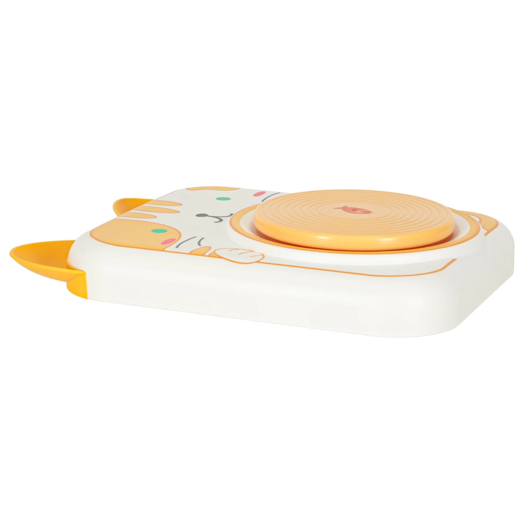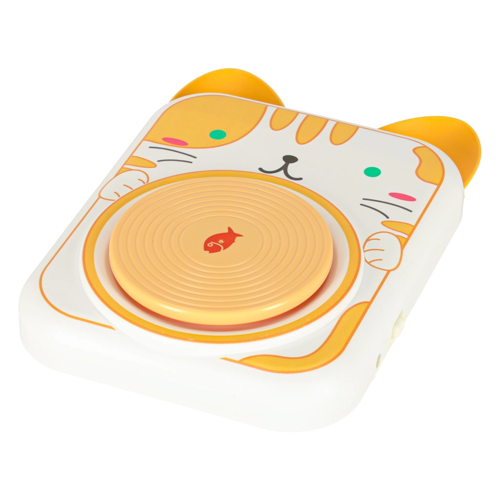 Този пълен сет включва също мека глина, различни инструменти за моделиране и бои за декорация, осигурявайки всичко необходимо за незабавно начало на грънчарското приключение. Формата на колелото е проектирана с котешки мотив, което привлича и задържа интереса на децата.