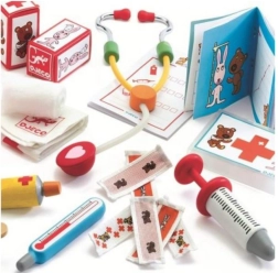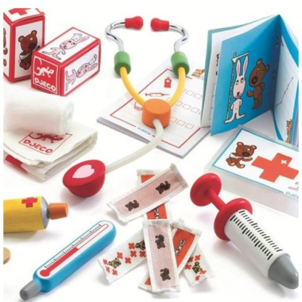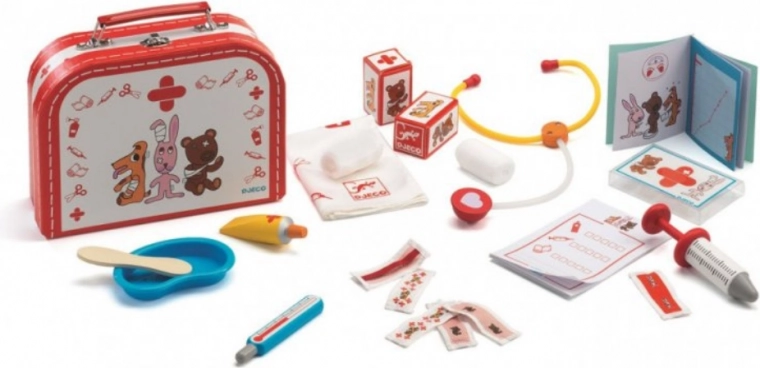 Лекарският куфар DJECO е идеалната играчка за деца, които искат да станат малки лекари. Този сет насърчава креативната игра, развитието на социални умения и емпатия. Съдържа различни медицински инструменти като стетоскоп, термометър и много други.