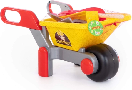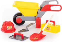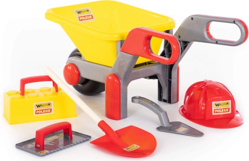 • Включва количка, каска, лопатка, мистрия и инструменти за зидарски дейности.