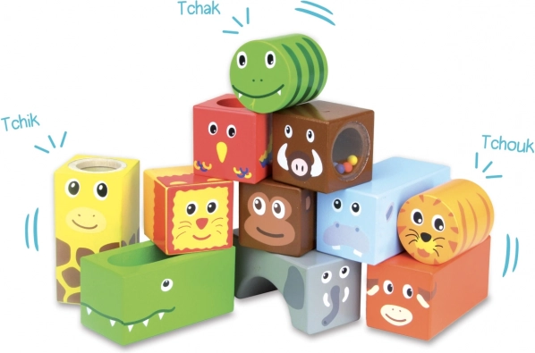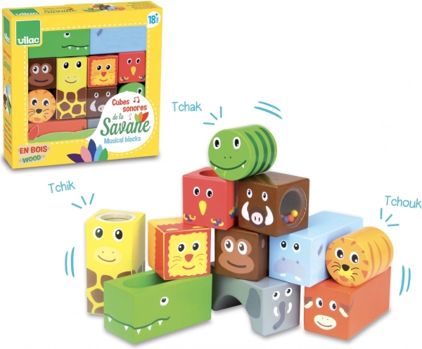 Открийте света на звуците и фантазията с дървените кубчета VILAC Саваната. Комплектът съдържа 11 сензорни кубчета, които помагат на децата да развиват фината моторика, слуховото възприятие и координацията око-ръка. Атрактивният савански мотив и различните звукови ефекти гарантират часове забавление.