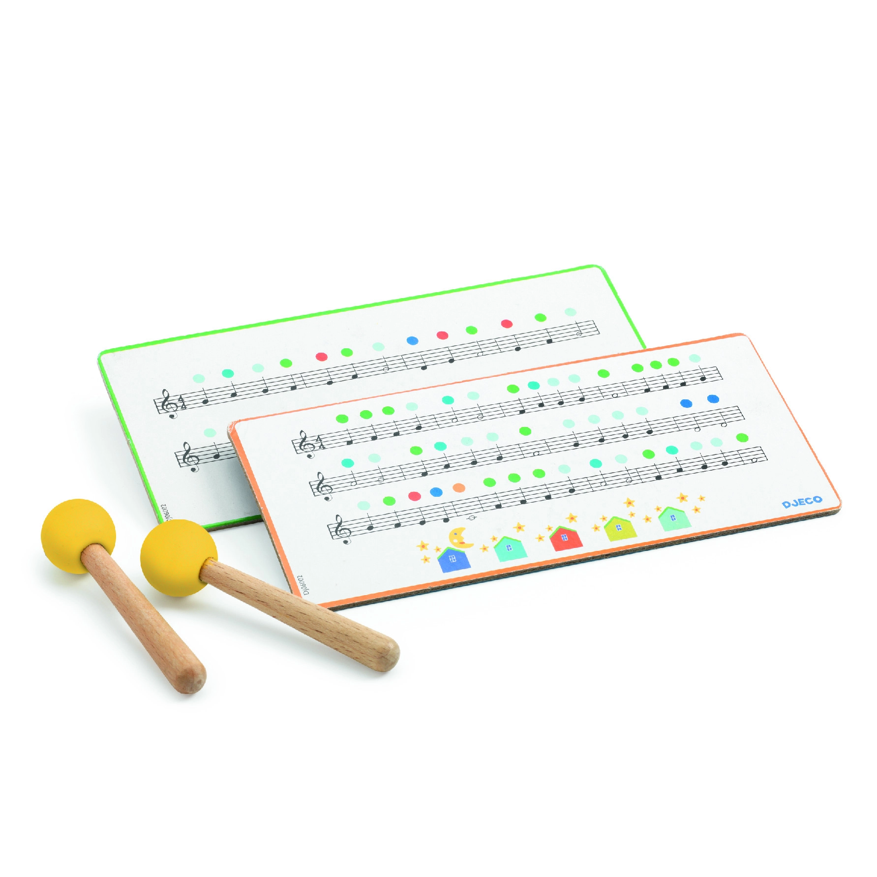 Номерираните езици и включените палки позволяват на децата незабавно да свирят приятни мелодии без предишен опит.