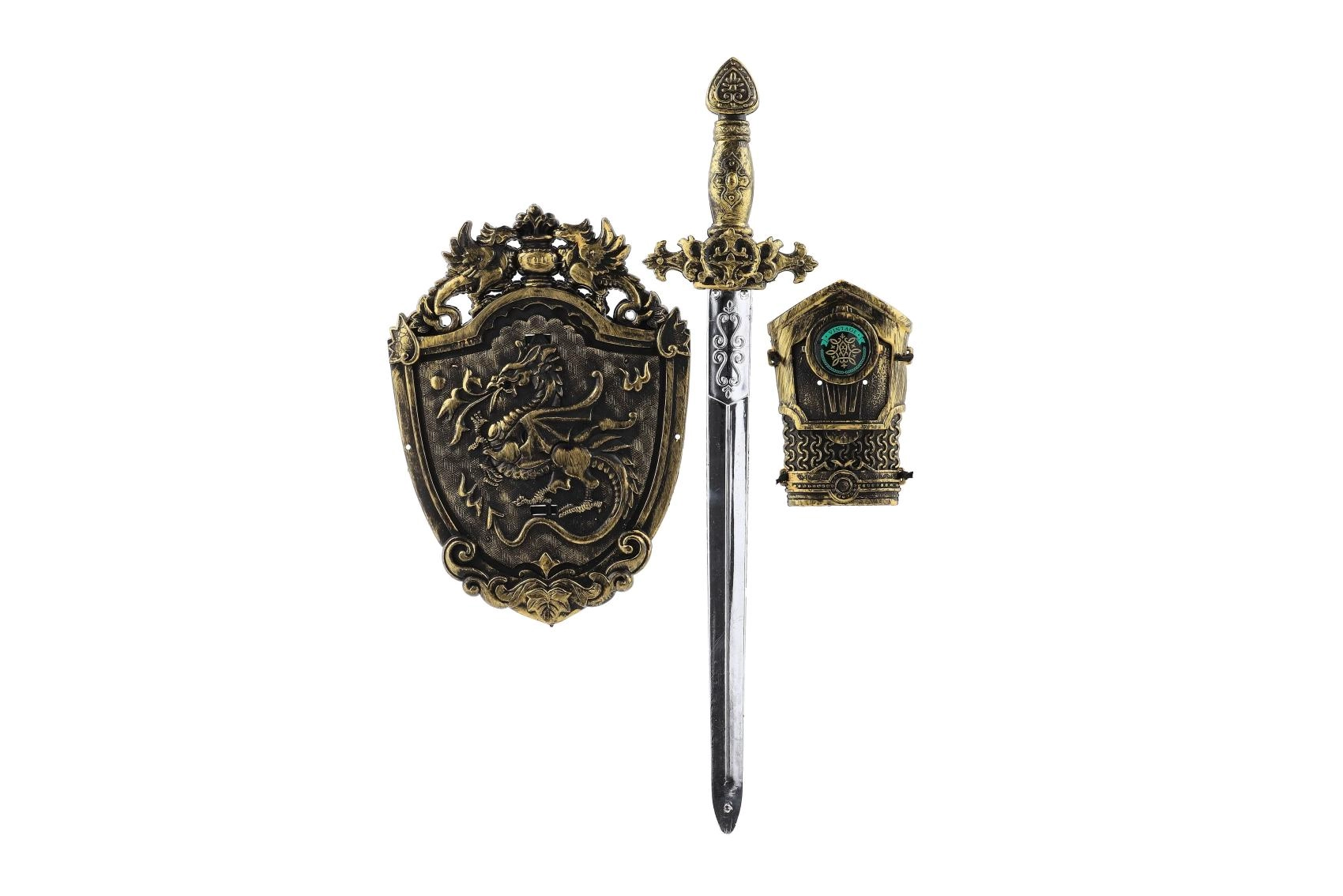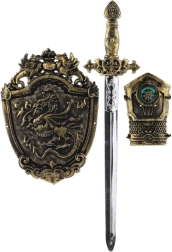 Станете смел рицар с този удивителен рицарски комплект, който включва пластмасов меч, предпазител за ръка и щит – всичко необходимо за приключенска игра у дома или в двора.