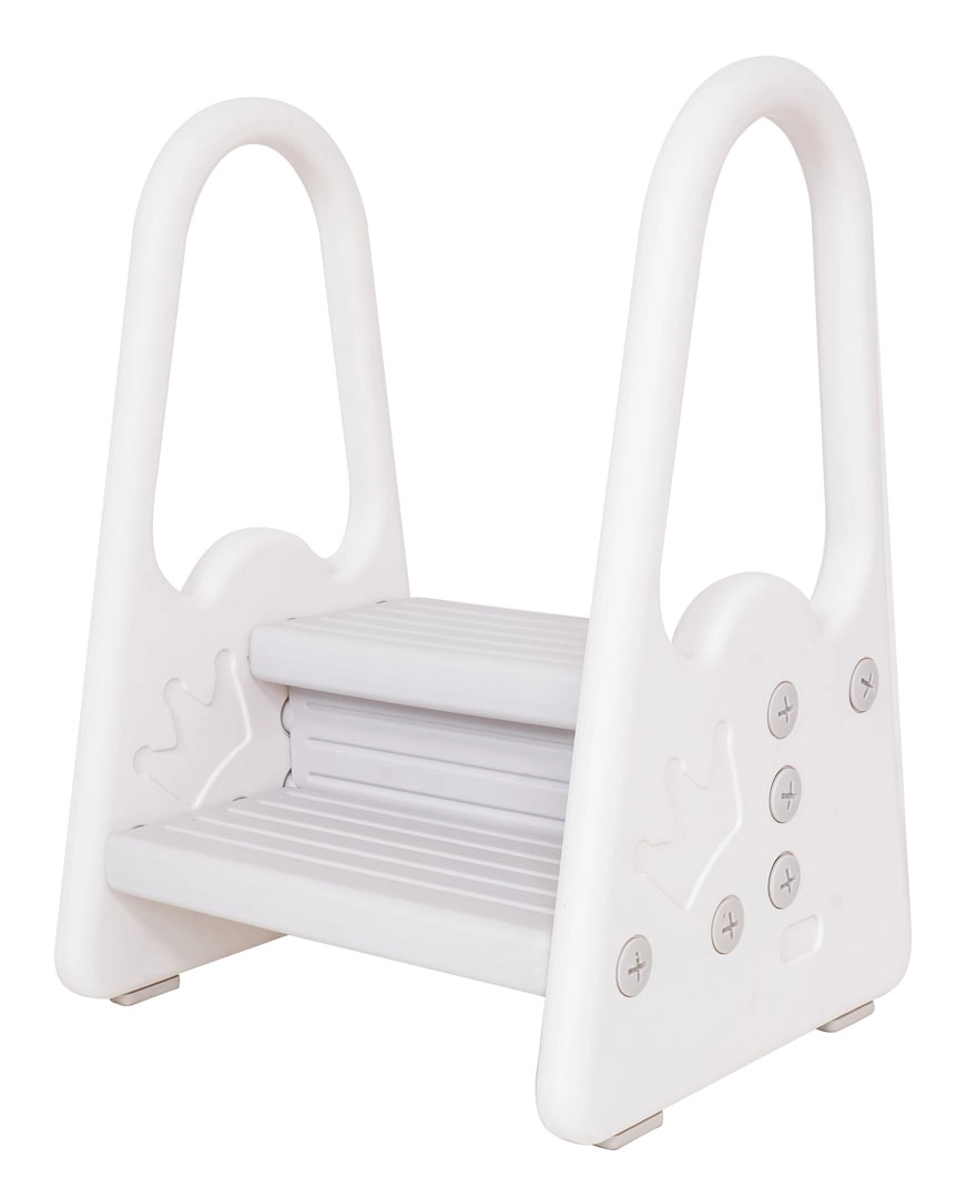 Леки и стабилни двустепенни стъпала със странични дръжки помагат на децата безопасно да достигнат до умивалника, кухненския плот или рафтовете. Изработени са от издръжлива пластмаса, имат нехлъзгащи се стъпала, лесно се почистват и благодарение на простия монтаж са готови за употреба за минути. Идеални за насърчаване на самостоятелността на деца от 3 години.