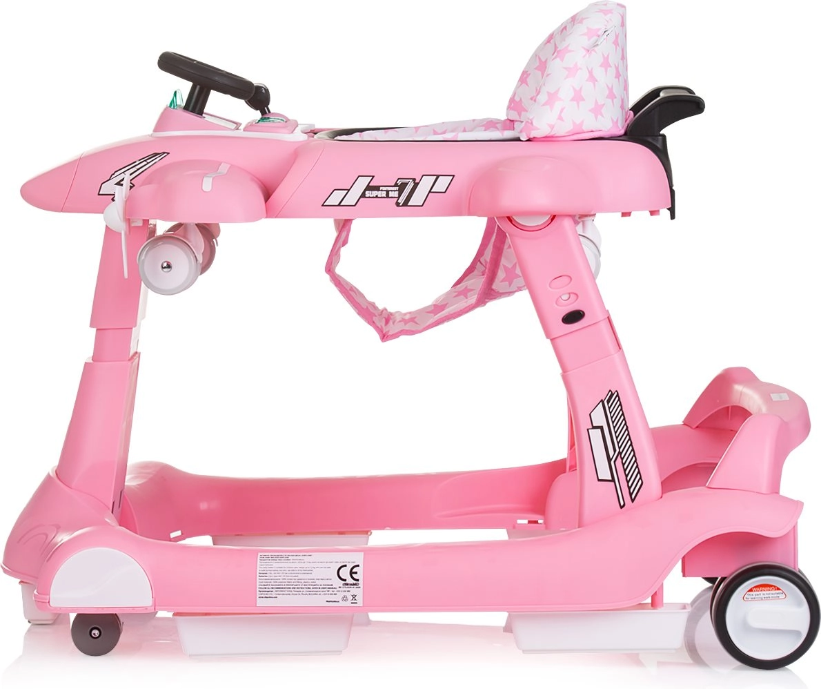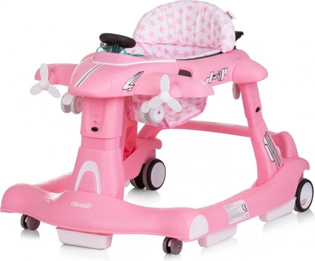Проходилката Самолет 3в1 е идеалният помощник за вашето дете при неговите първи стъпки. Благодарение на нея детето се научава да поддържа равновесие и координация на движенията. Забавният игрови панел с играчки и музика развива неговата креативност и осигурява забавление.