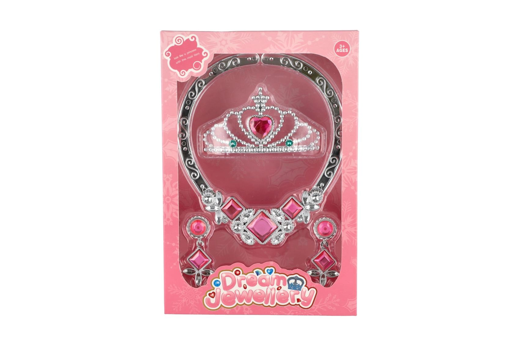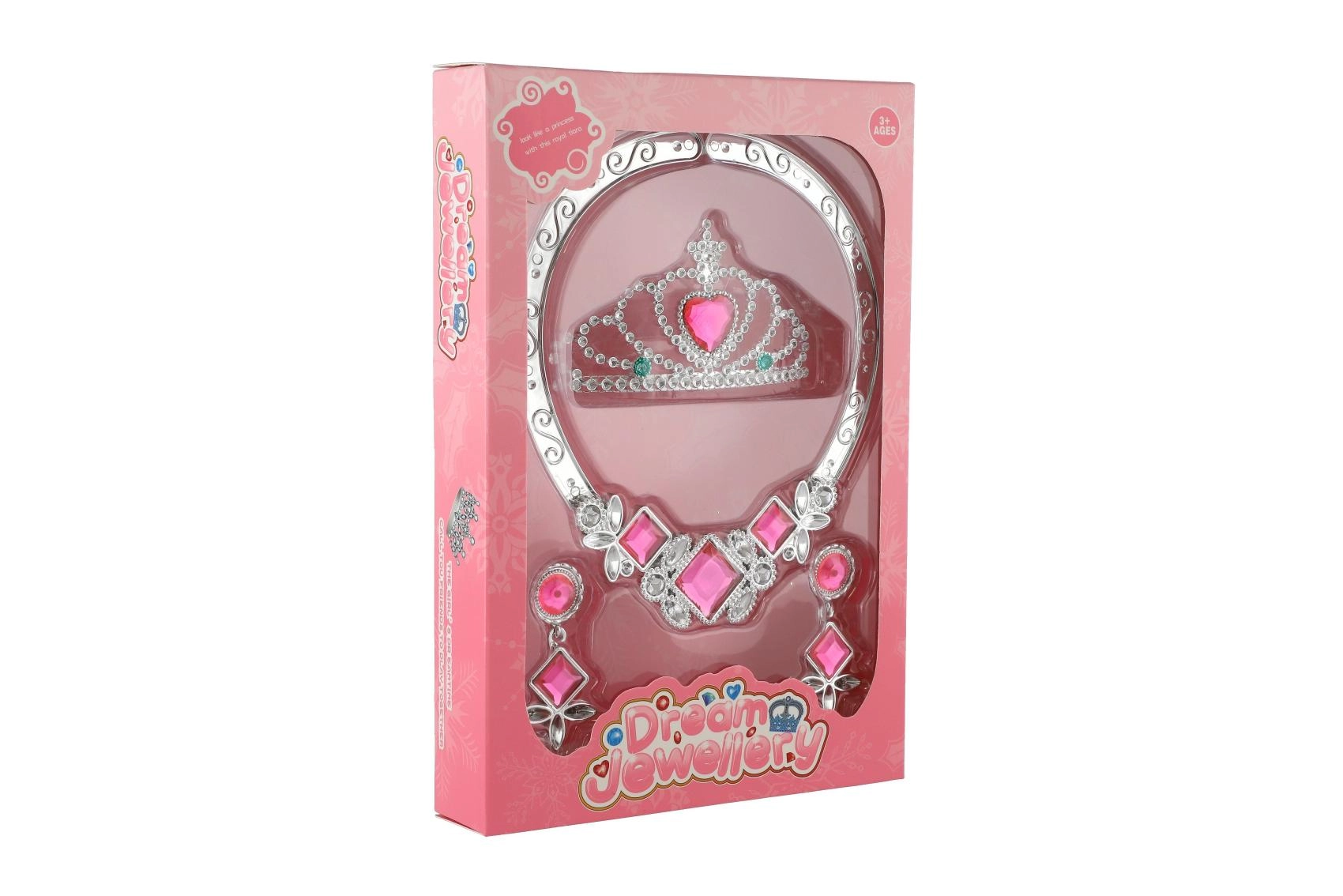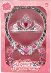 Стани принцеса за миг с този очарователен комплект за красота, който включва всичко необходимо за кралска визия – блестяща корона, съчетаващо се колие и елегантни обеци.