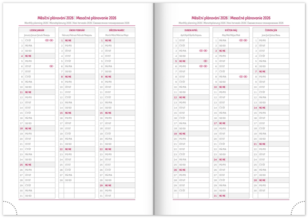 - Месечни и годишни планери за 2026 и 2027