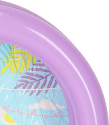 Изработен от качествен PVC материал и оборудван с предпазни вентили, басейнът е лек и лесен за пренасяне. Двата надуваеми пръстена допринасят за неговата стабилност, а цветните мотиви на дъното добавят весела атмосфера към всяко водно забавление.