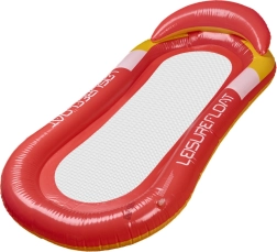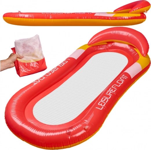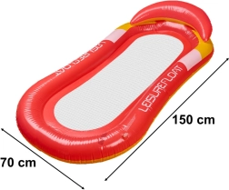 Този плувен шезлонг е оборудван с мека мрежа, която позволява удобно лежане върху водата.