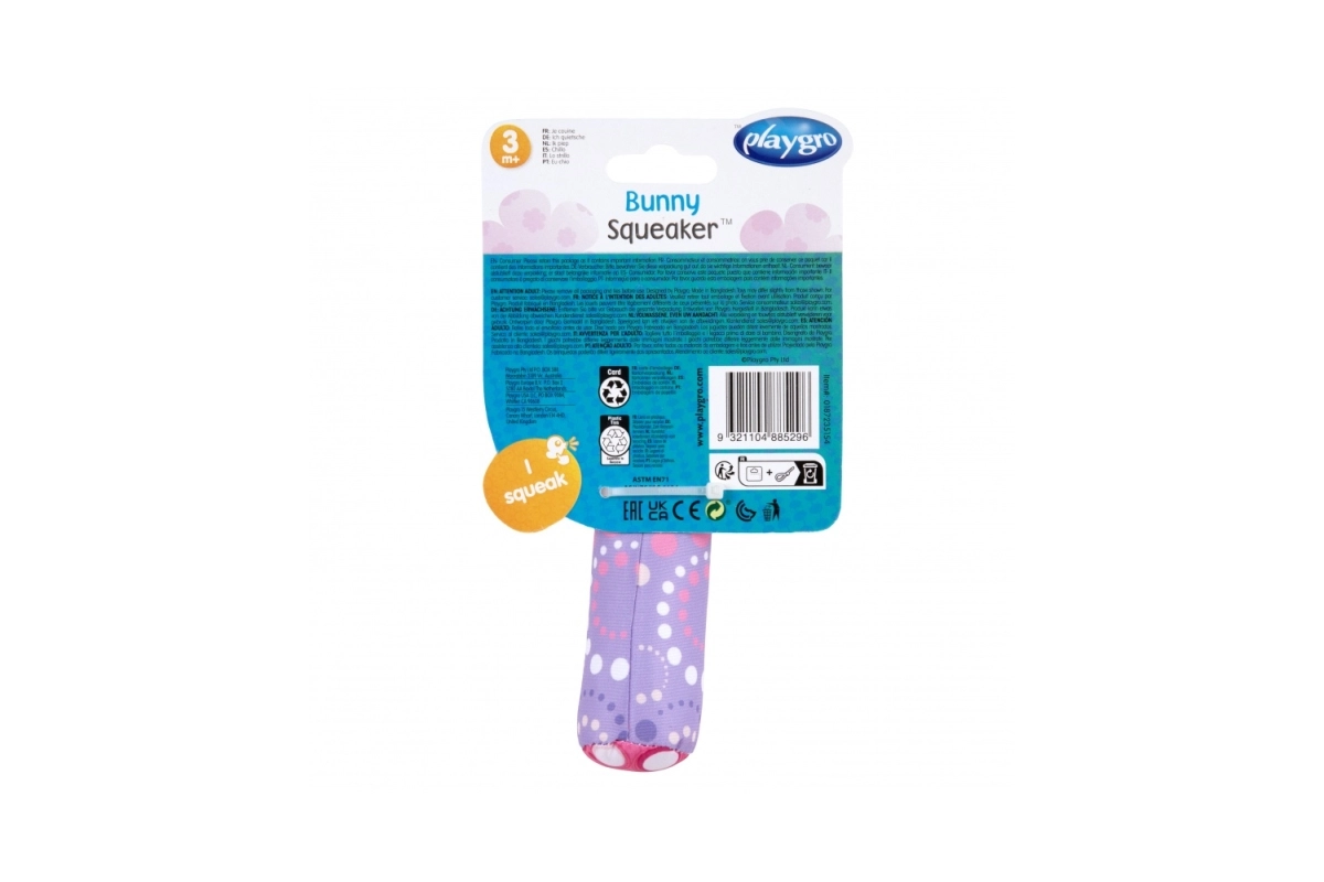Свирката Заъче от Playgro е идеалният спътник за деца от 3 месеца. Благодарение на ергономичния дизайн и стимулиращите материали помага за развитието на сетивата на вашето дете.