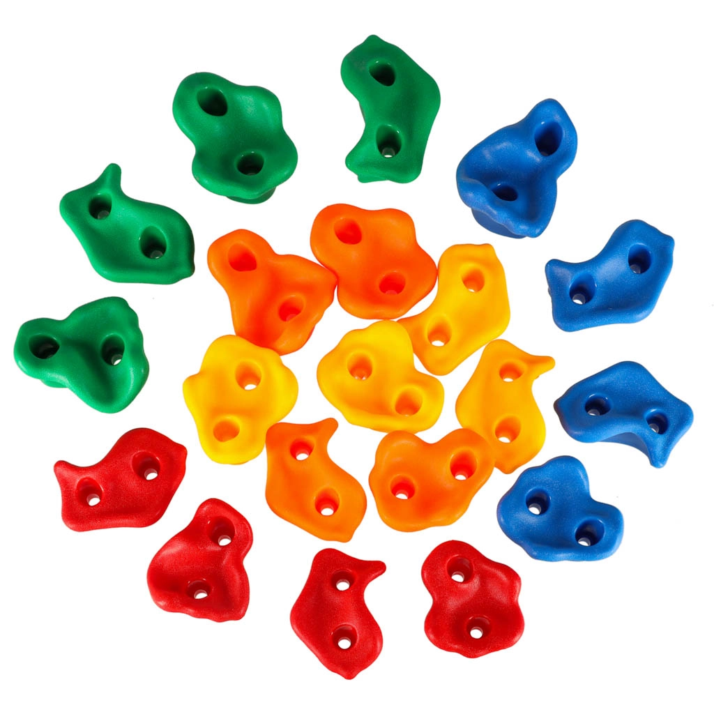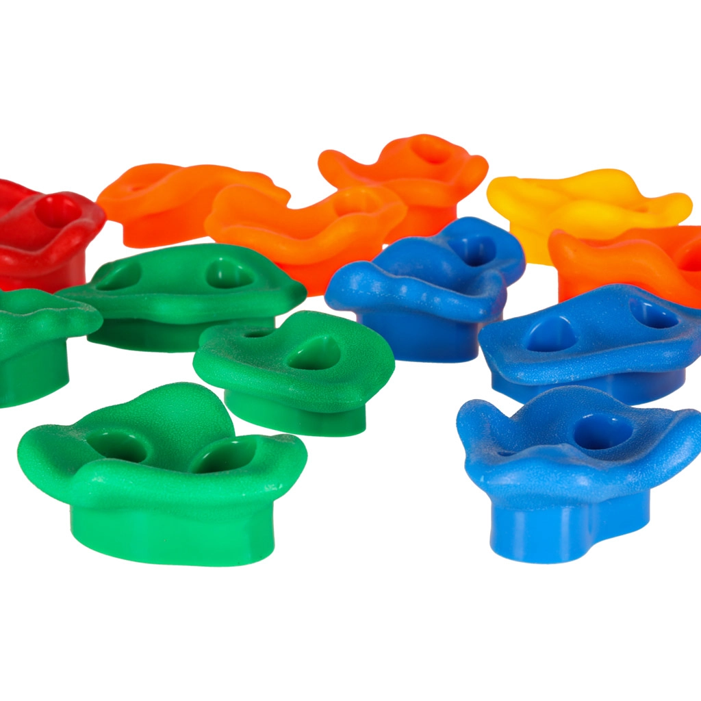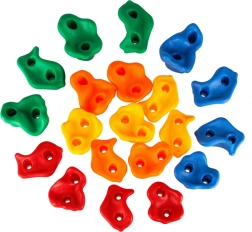 Комплектът от цветни хватки е чудесна алтернатива на детската площадка и вдъхновение за активен начин на живот. Със собствена катерачна стена не само ще подкрепите физическото развитие на децата, но и тяхната креативност и радост от движението.