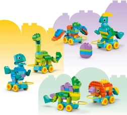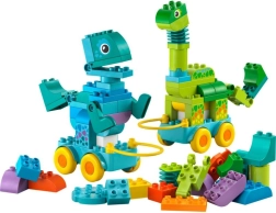 Този комплект не е само за построяване, но и за игрово учене. Кубчетата LEGO DUPLO са проектирани за лесна манипулация, което подпомага развитието на търпение и концентрация при децата. Комплектът включва и основа с колелца, благодарение на която динозаврите могат да се превърнат в подвижни модели, осигурявайки още повече забавление за всички малки почитатели на LEGO DUPLO превозни средства.
