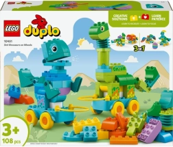 Обогатете творческата игра на децата си с този уникален комплект LEGO DUPLO Динозаври на колелца. Комплектът предлага три различни възможности за сглобяване, което означава, че децата ще се забавляват с различни видове динозаври: Диплодок и T-rex, трицератопс и стегозавър, птеранодон и паразауролоф. Всеки модел може да се подобрява с подвижни части, като врат, опашка или крила, което насърчава развитието на фината моторика и въображението.