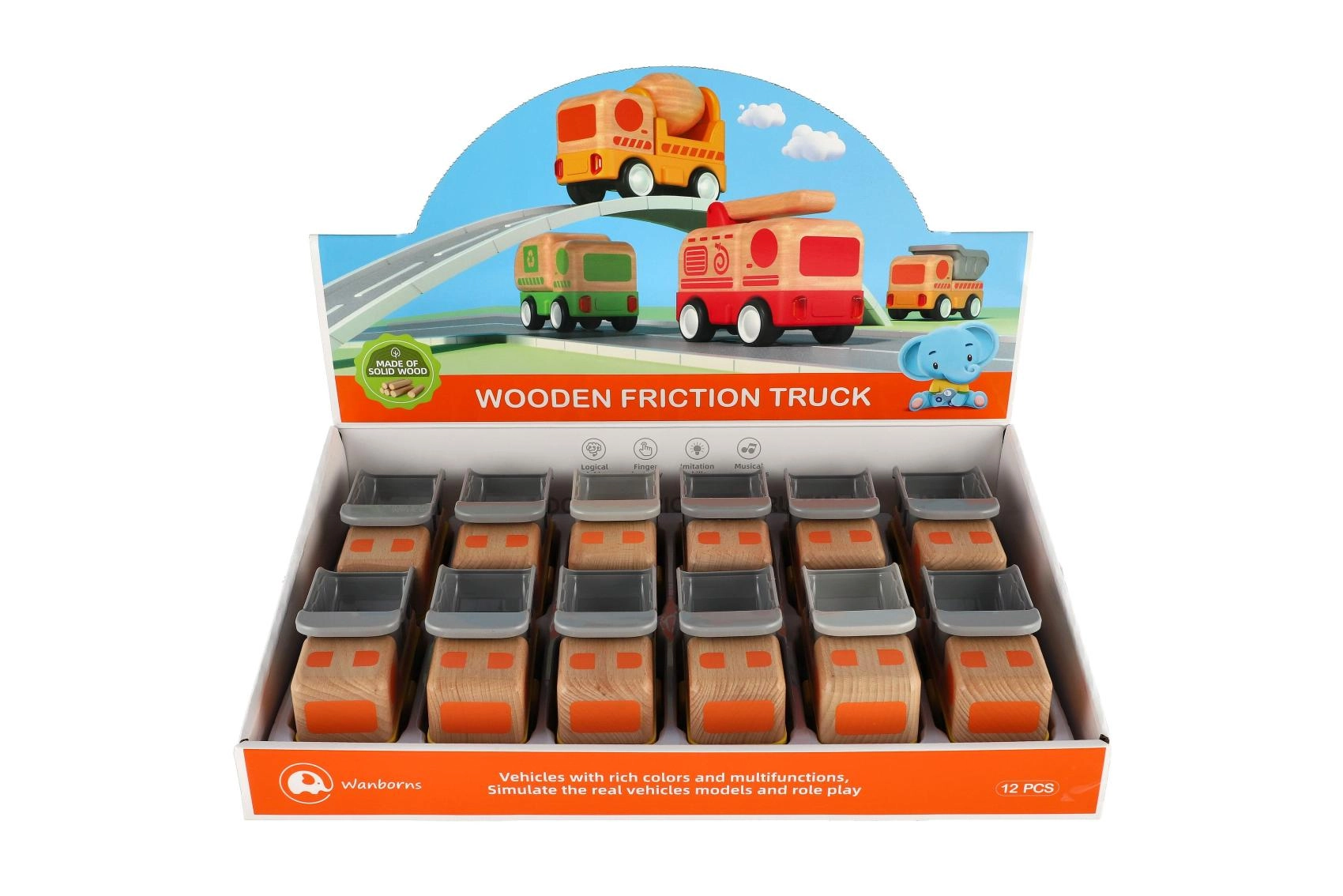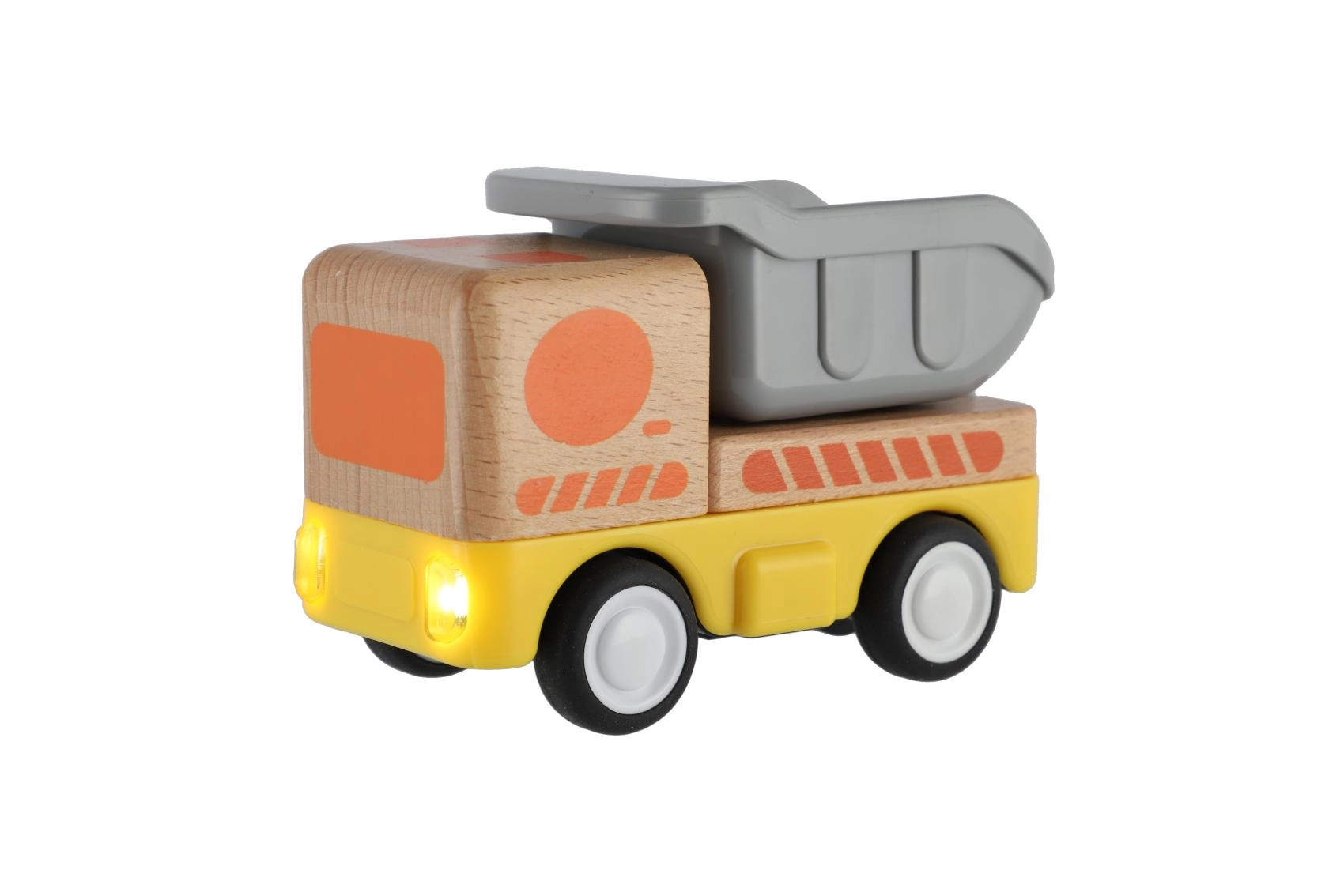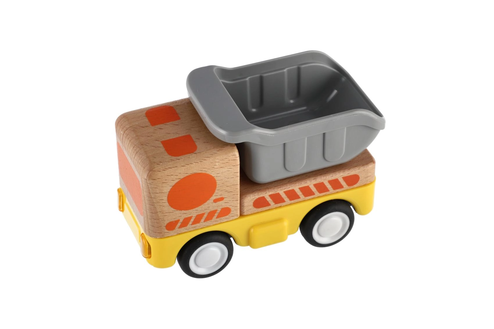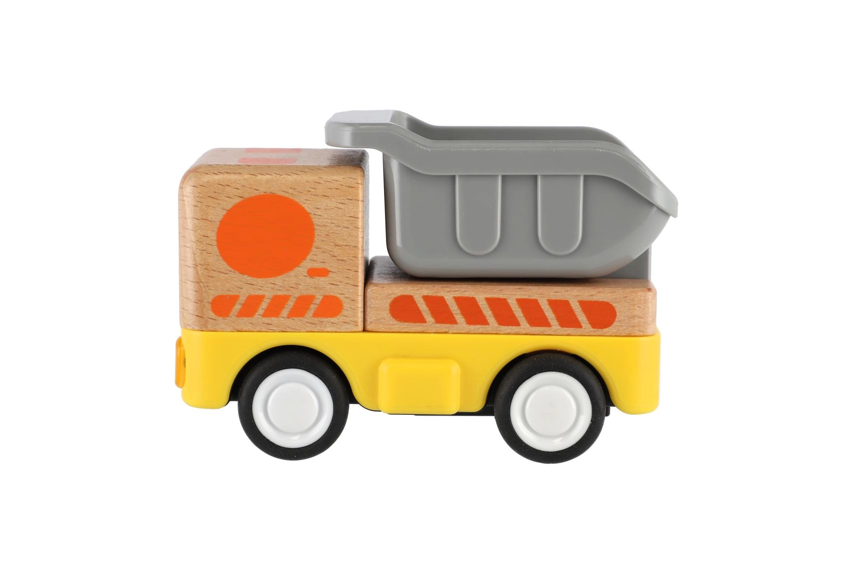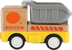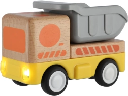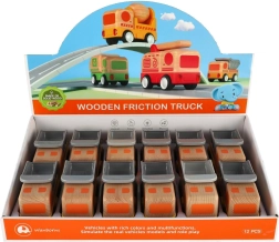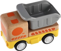 Здраво дървено товарно камионче с инерционен механизъм, което ще зарадва всеки малък шофьор! Инерционното задвижване позволява леко побутване на камиончето, след което то само се движи напред. Идеално за малки детски ръчички.