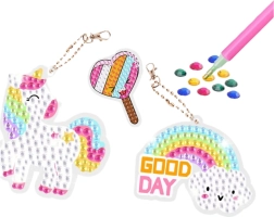 Шаблоните и местата за залепване на диамантите са обозначени – не е необходимо да имате специални умения, за да създавате оригинални стикери и ключодържатели. Това е релаксиращо занимание, което развива концентрация, търпение и сръчност. Идеално както за индивидуално творчество, така и за забавление със семейството.