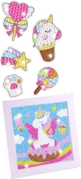 Комплектът съдържа всичко необходимо за завършване на целия проект, включително декоративна рамка с очарователно изображение на еднорог. Играчката е идеална като подарък за малки творци.