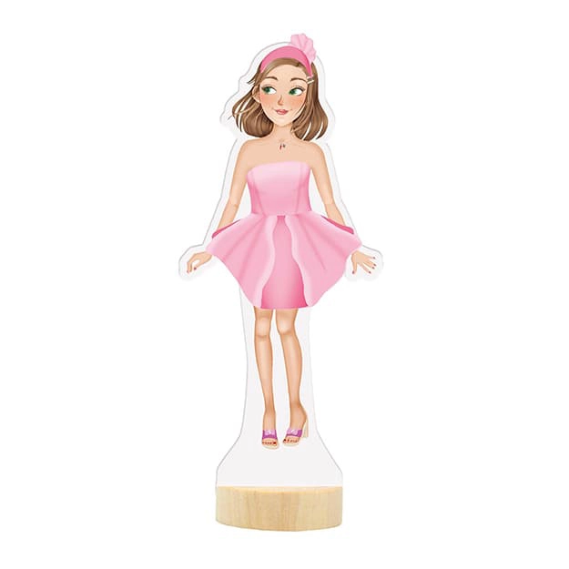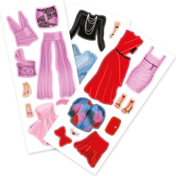 Тази магнитна кукла предлага часове забавление и творчество. Комплектът включва 30 части облекло, обувки и аксесоари, които лесно се сменят и комбинират.