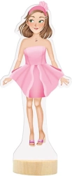 - Кукла, 30 магнитни части (облекло, обувки, аксесоари), дървена стойка