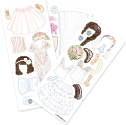 Благодарение на трите листа с магнитни части вашето дете може да създава безброй модни комбинации и да облича куклата според желанията си.