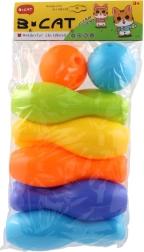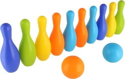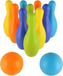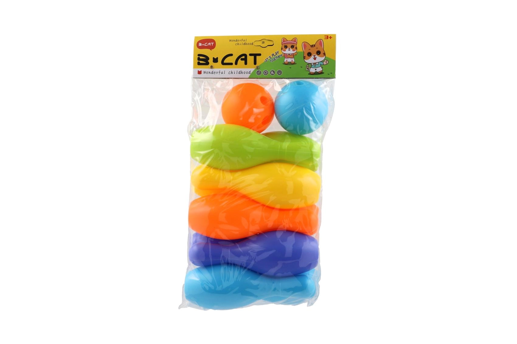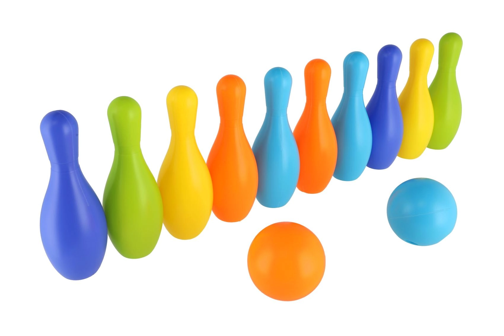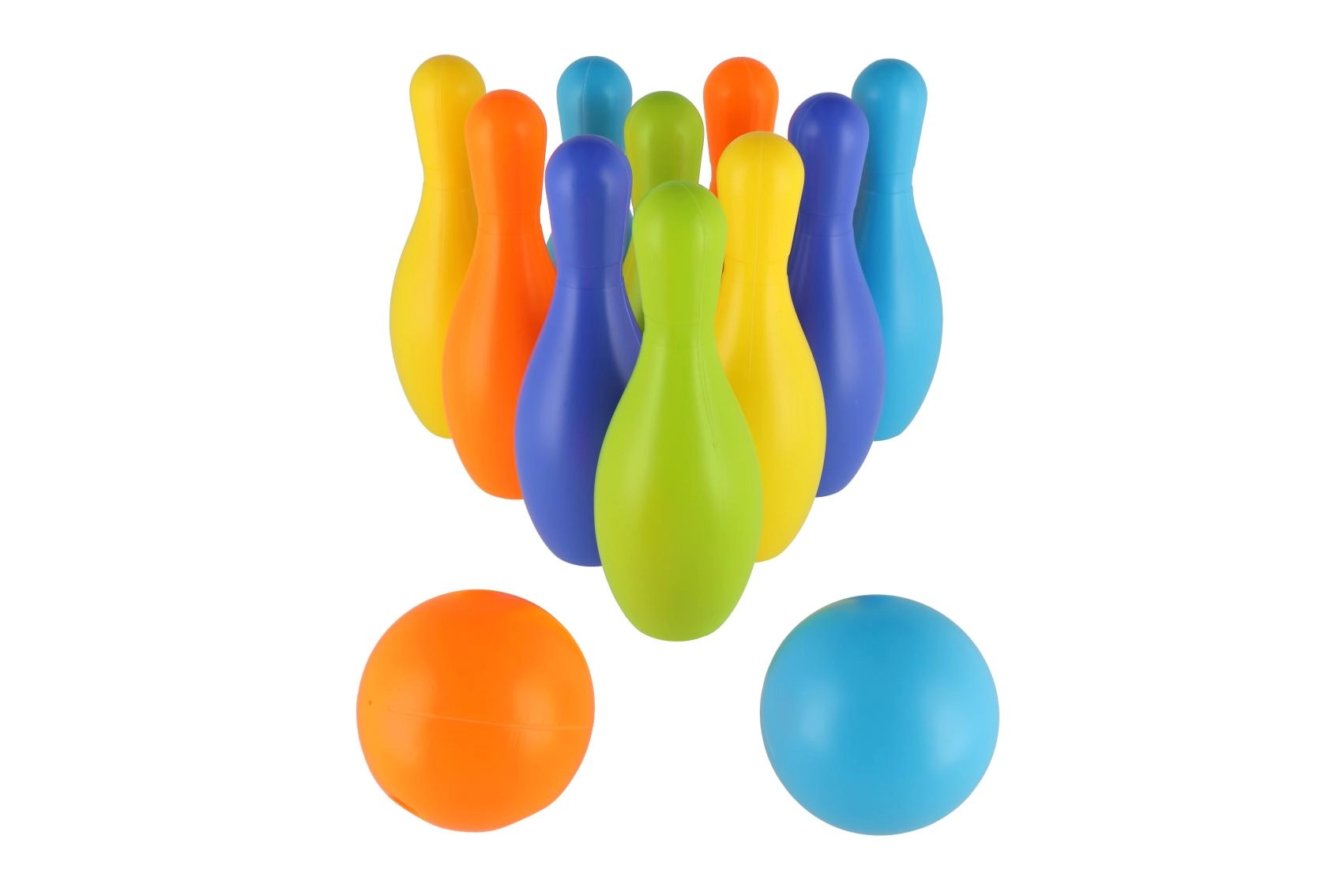 Кеглите и топките са в ярки цветове като оранжево, зелено, жълто и синьо, което ги прави атрактивна играчка за деца.
