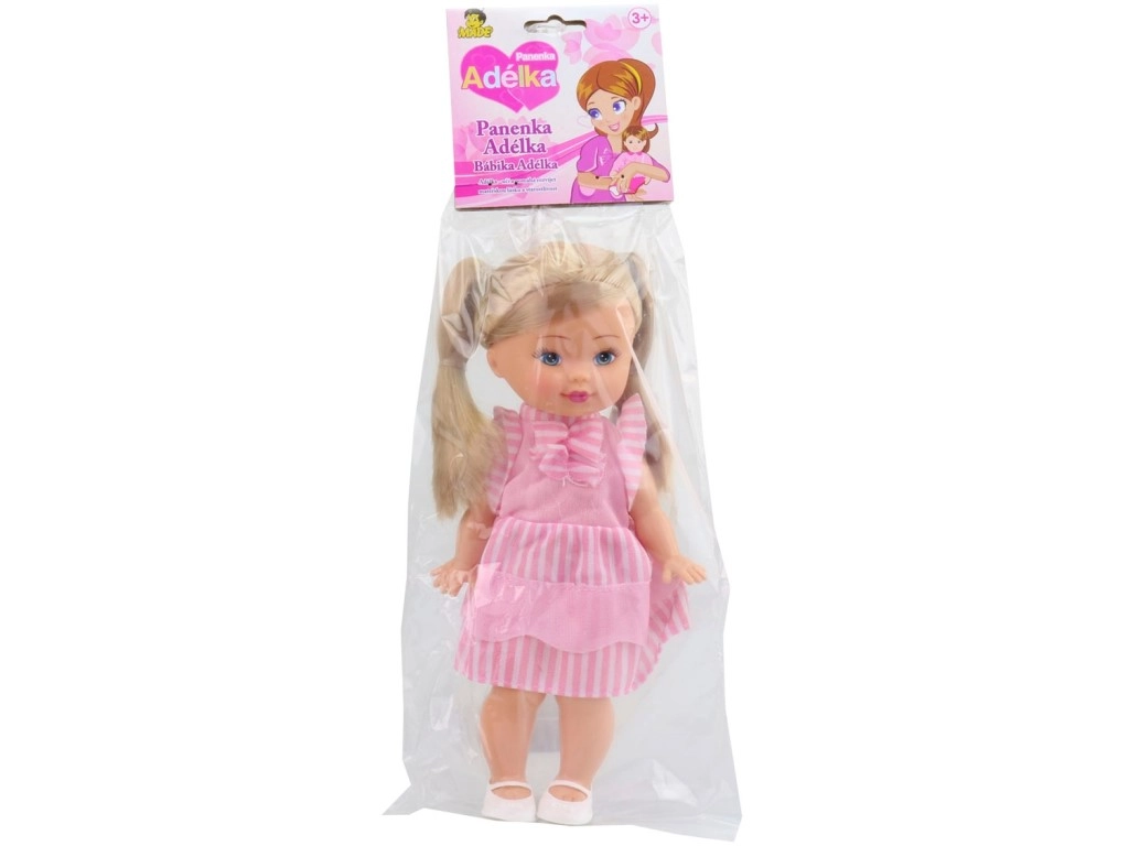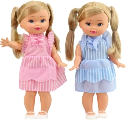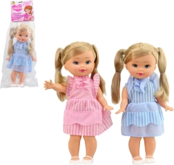 Очарователна кукла с плитки и тиранти, идеална за всяко малко момиче. Нейното раирано облекло с украса със сигурност ще плени всяко детско сърце.