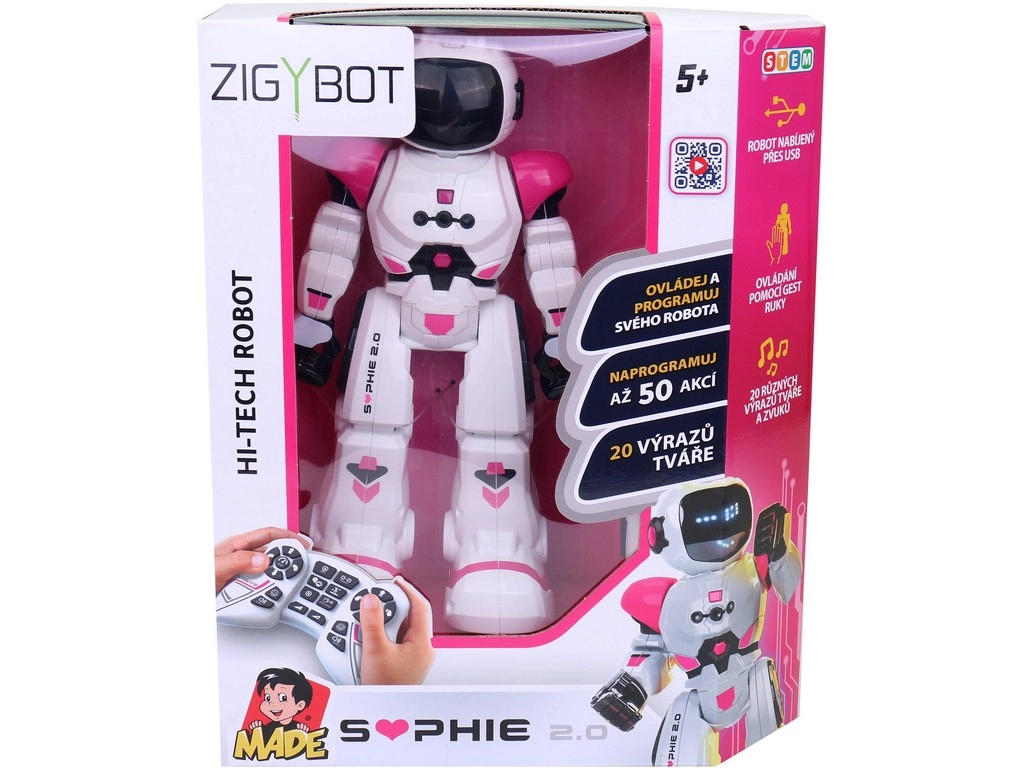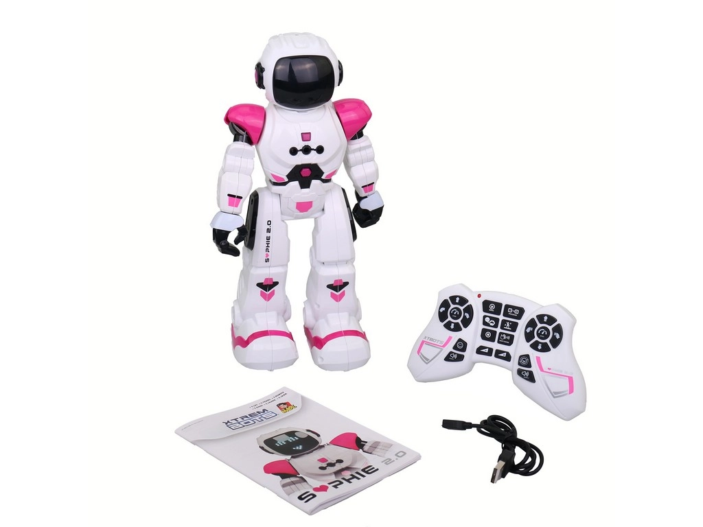 Управлението е възможно не само чрез дистанционното, но и с движение на ръката, което повишава нивото на забавление. С включване на USB кабел Sophie се зарежда лесно и е винаги готова за употреба.