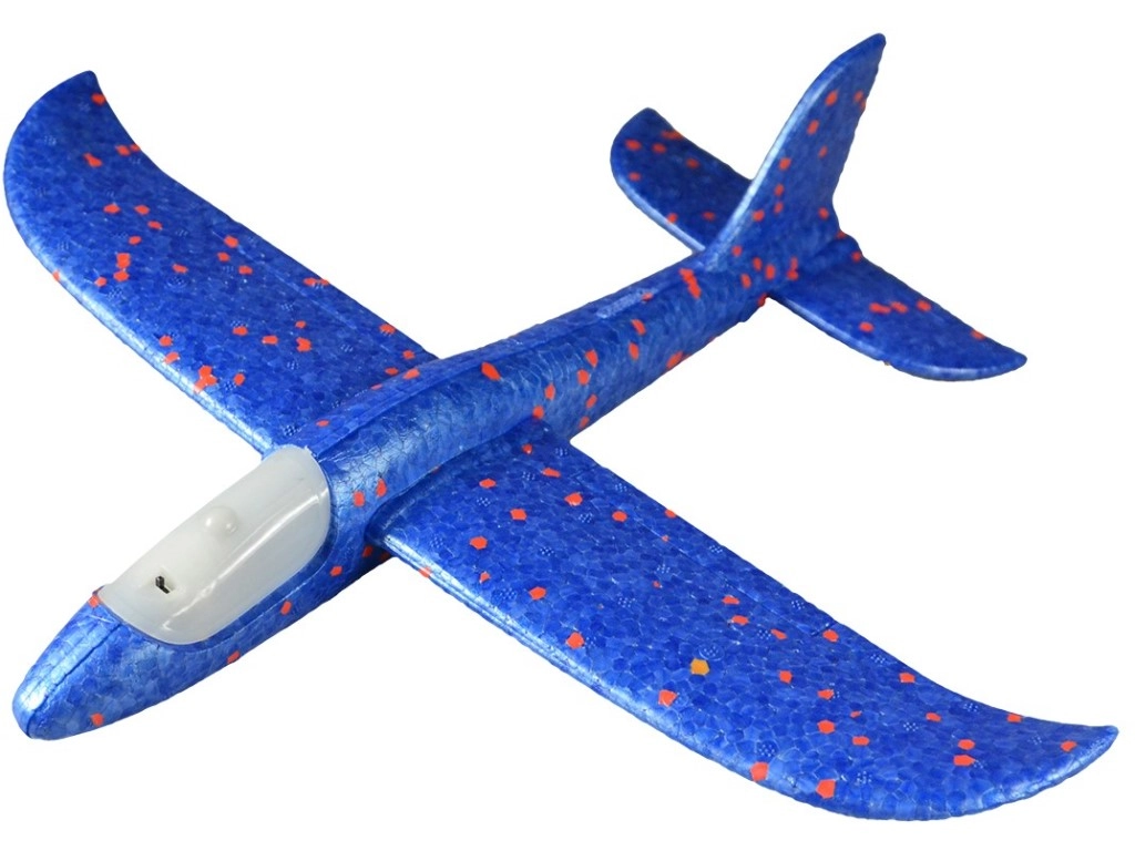 Хвърчащото самолетче с LED светлина е перфектно забавление за детски игри. С височина 30 см пасва отлично в ръката и с леко хвърляне децата могат да се забавляват навън или у дома.