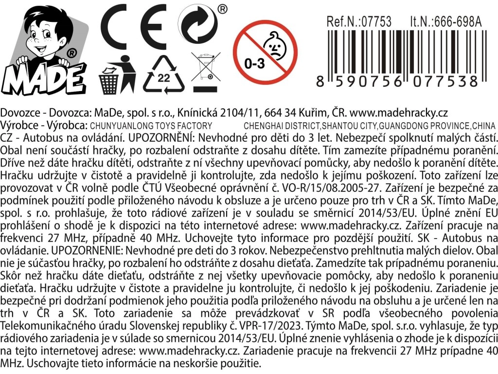 Открийте света на забавлението с нашия автобус с дистанционно управление, който е идеален за игра у дома и навън. Проектиран е за деца от 3 години и лесното управление позволява на всеки да стане майстор в шофирането.