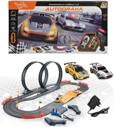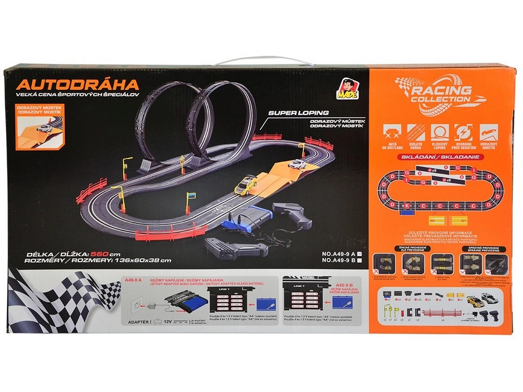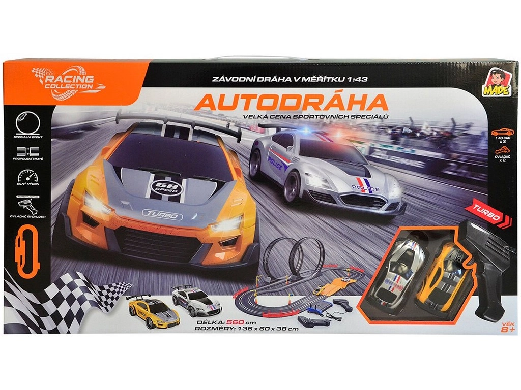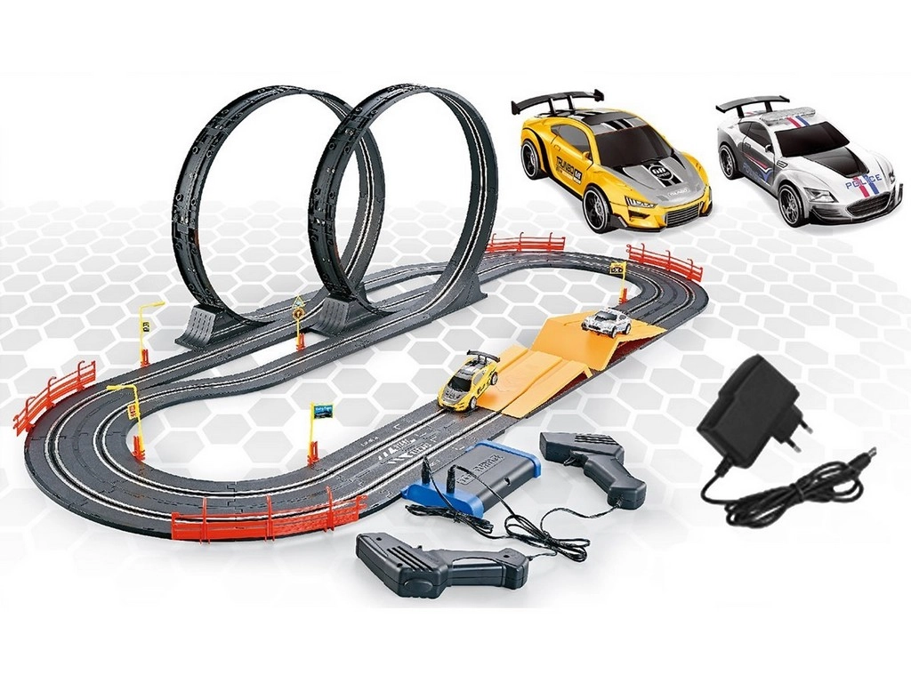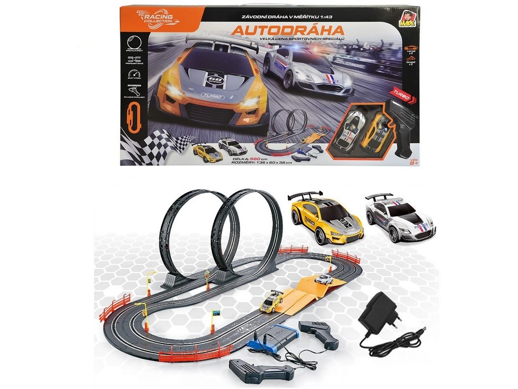 Подгответе се за завладяващи състезания със състезателната писта от серията Racing Collection. Този комплект включва два състезателни автомобила и всичко необходимо за динамично каране, включително два контролера, лупинги и скок рампа. Благодарение на лесната работа и простия монтаж е идеално забавление за цялото семейство.