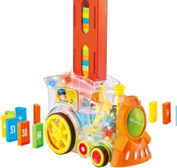 Този оригинален прозрачен локомотив е чудесен начин да забавлявате децата. Локомотивът подрежда домино плочките с равномерни разстояния, което осигурява уникално визуално изживяване. Играчката възпроизвежда мелодии, които допълнително засилват забавлението.