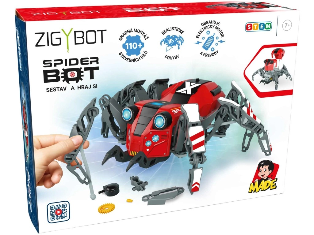 Роботизиран паяк от серията Zigybot е забавен конструктор с повече от 110 части, който предлага интерактивно изживяване при сглобяване и развива детската креативност и сръчност.