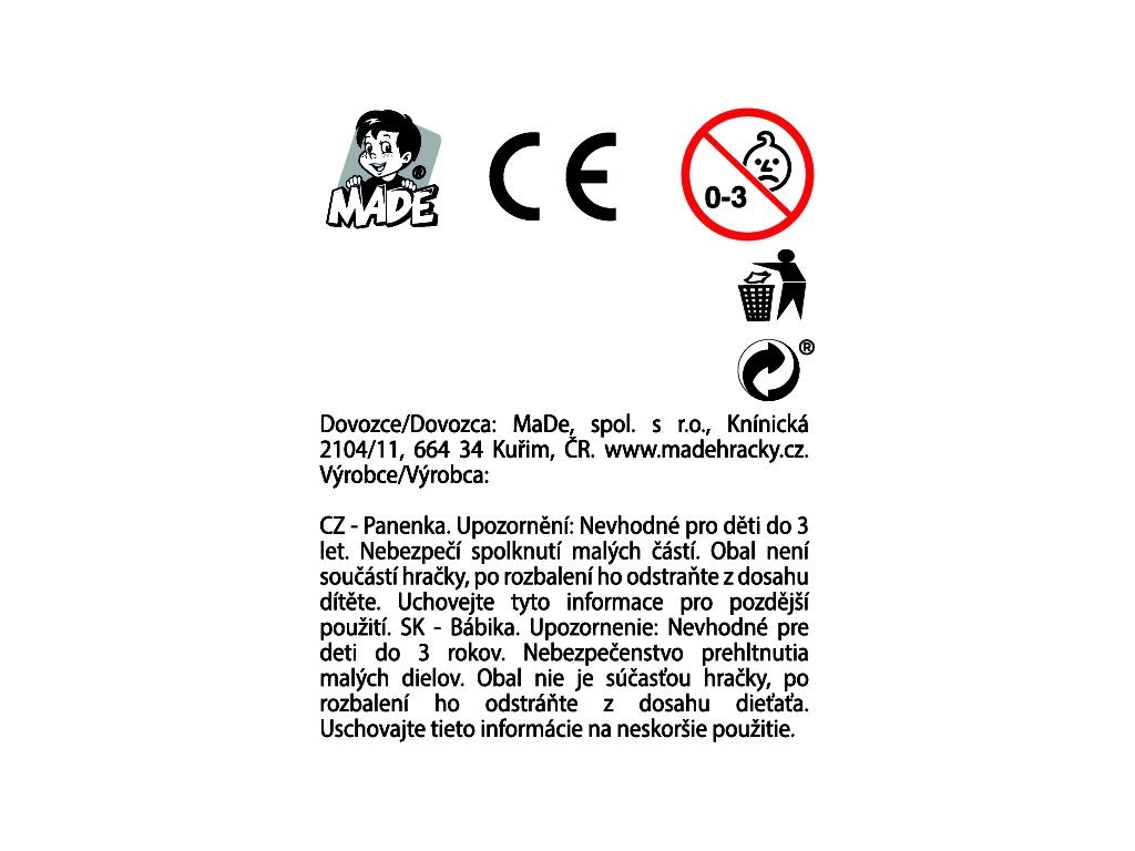 Размерите на играчката са 11 x 5 x 24 cm, което осигурява идеален размер за детските ръце. Изработена е от издръжлива пластмаса, която гарантира дълъг живот и устойчивост на повреди. Играчката се доставя в дисплей кутия и е предназначена основно за момичета, които могат да играят с реалистична кукла.